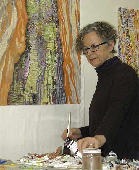 I paint, sketch, and photograph while out in nature. Sitting in a redwood forest or by a stream is a sensory experience—seeing, hearing, touching, and “feeling” the site. The overall atmosphere is enriching to my being. I look for the unusual and odd and hope that my artwork will flow and develop from my memories. Nature is complex and confusing and this feeds my being. I tend not to simplify but look towards recording the confusion and leaving mental room for imagination and discoveries.